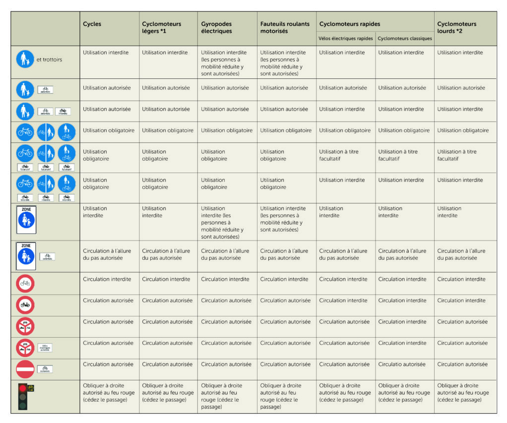 Dans ce contexte, nous vous proposons ci- dessous un tableau récapitulatif permettant de mieux comprendre la signification de la signalisation destinée au trafic cycliste et les nouveautés qui entreront en vigueur dès le 1er juillet 2025.